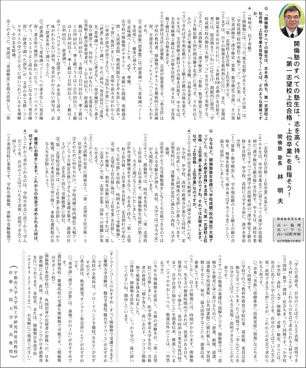 開倫塾は、東京都・栃木県・群馬県・茨城県に展開する地域密着型の進学塾です。 中学受験・高校受験・大学受験・各検定のことならお任せください。